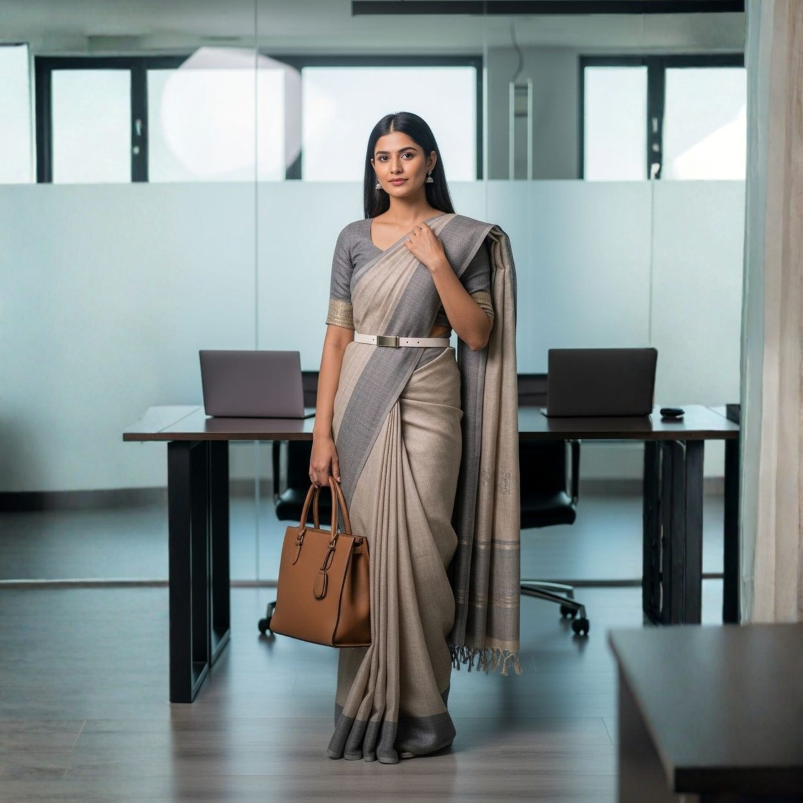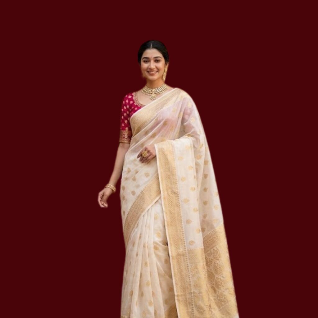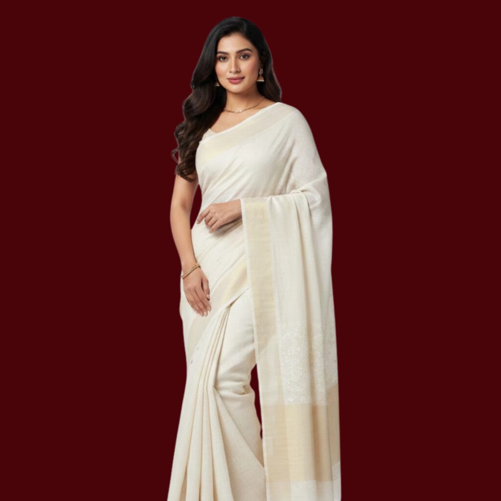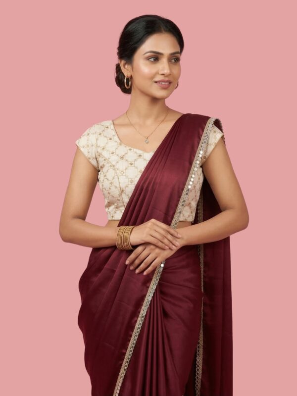 Parvanya Mahogany Wine Satin Saree with Ivory Contrast Work Blouse