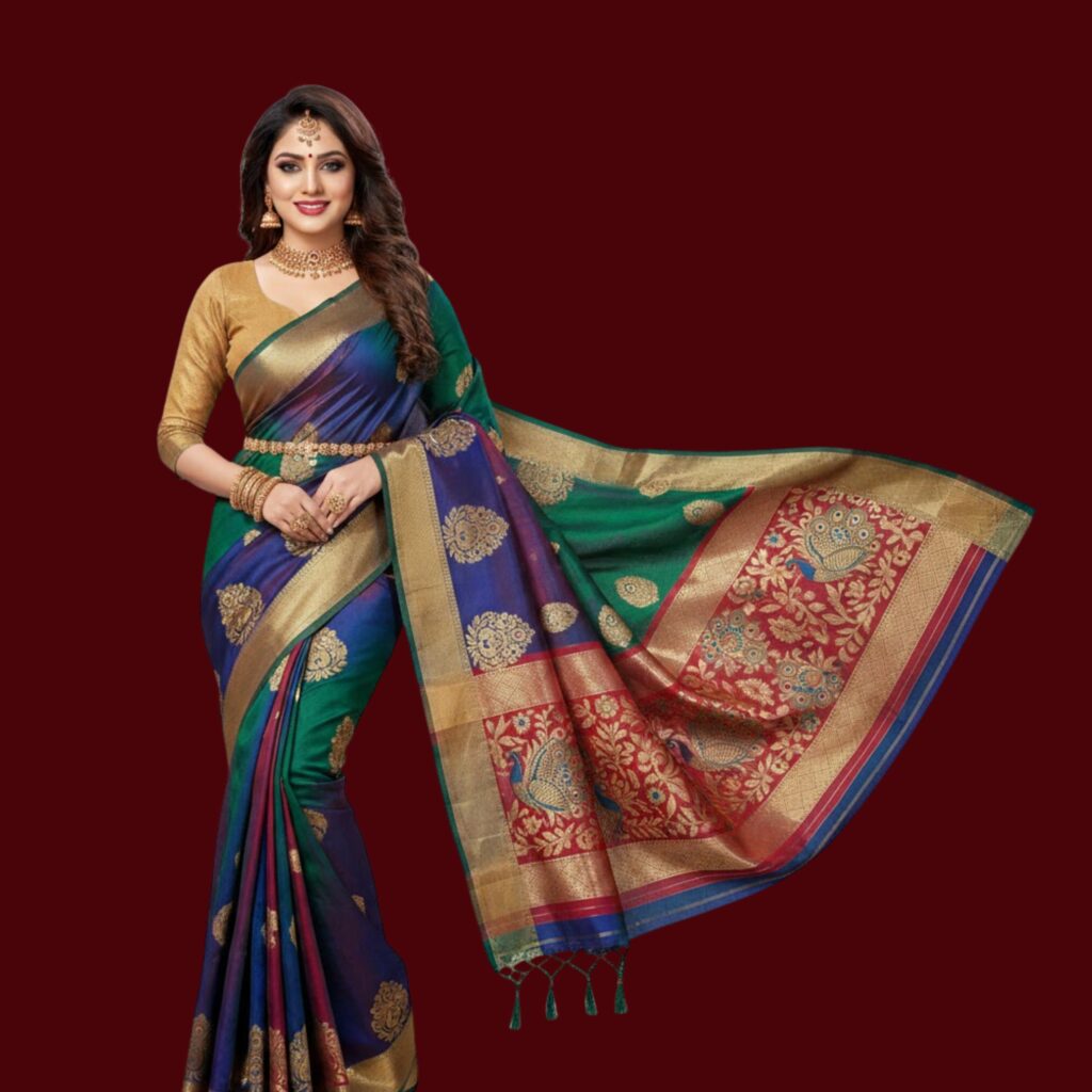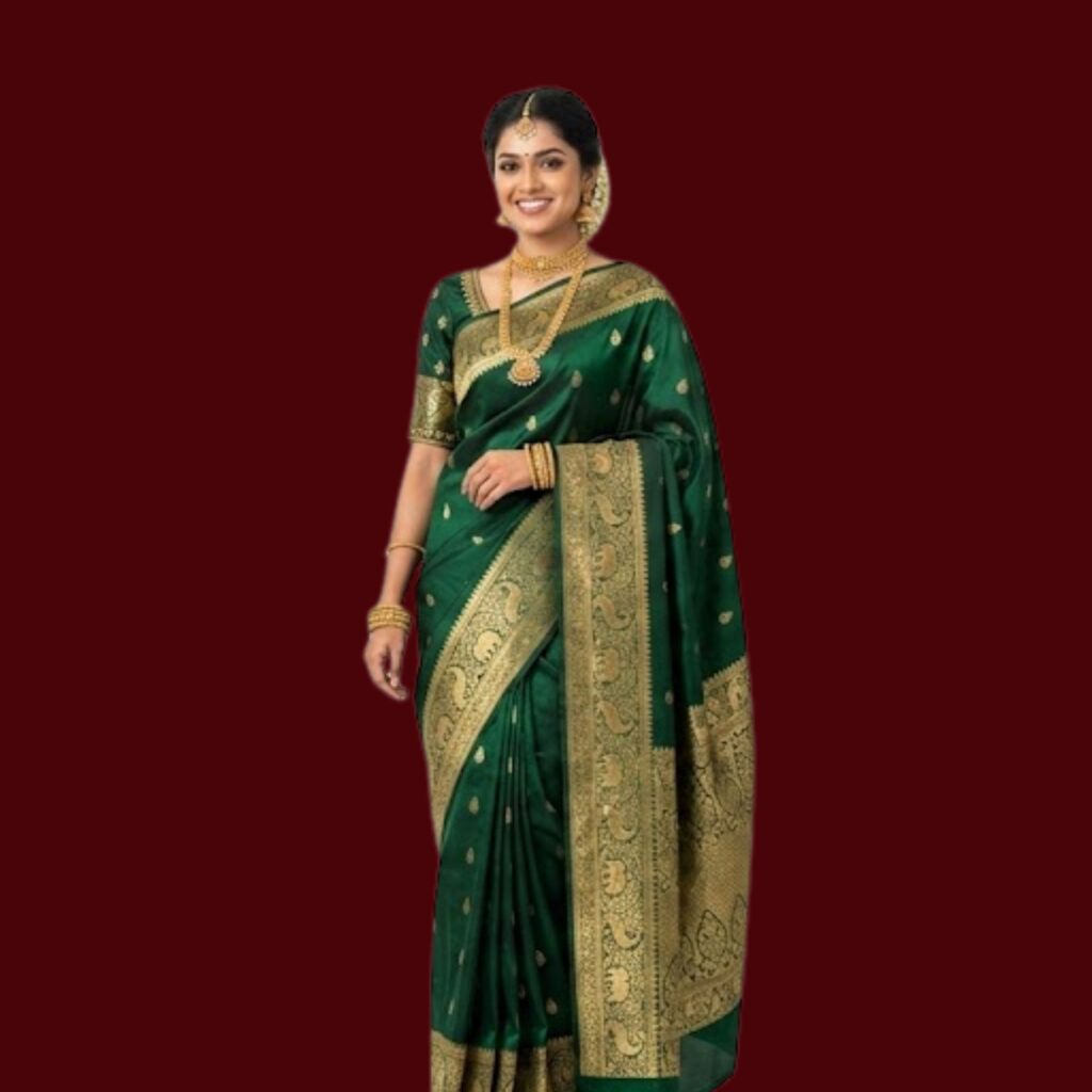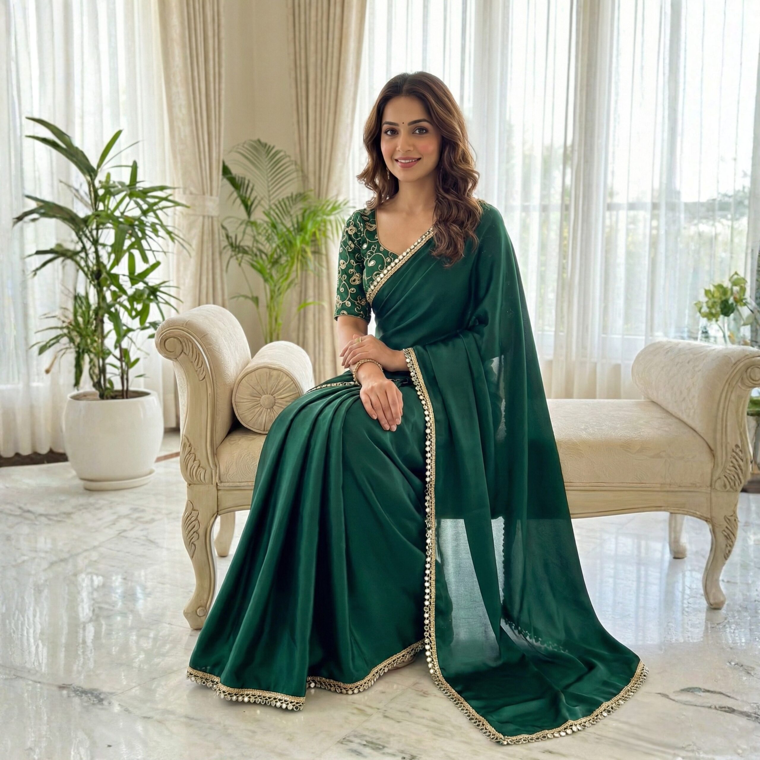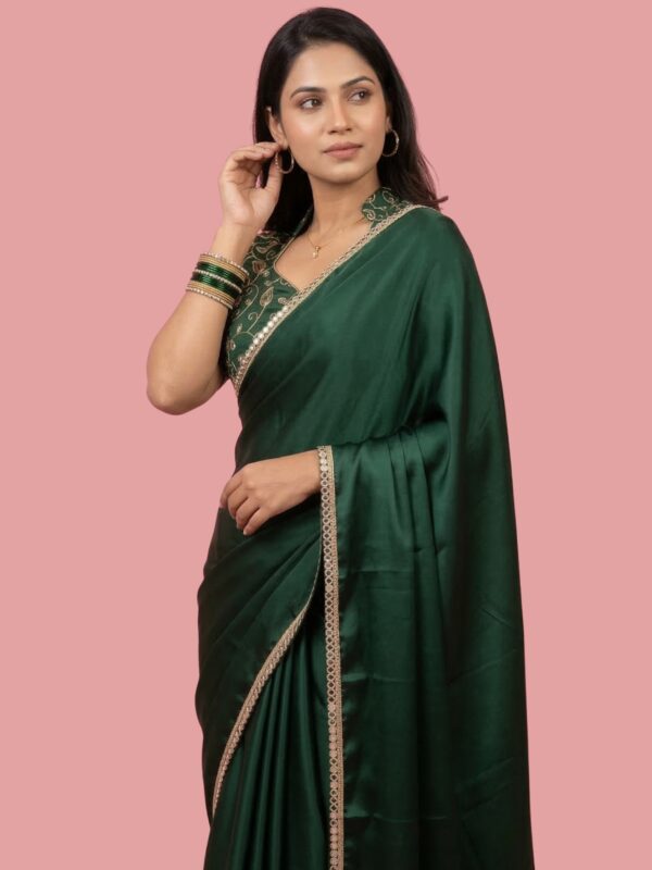 Parvanya Forest Emerald Satin Saree with Antique Mirror Lace