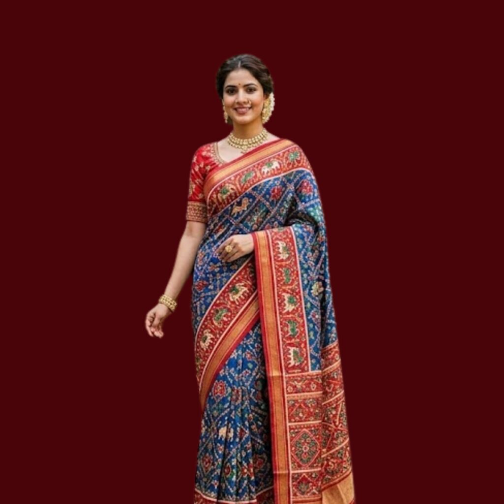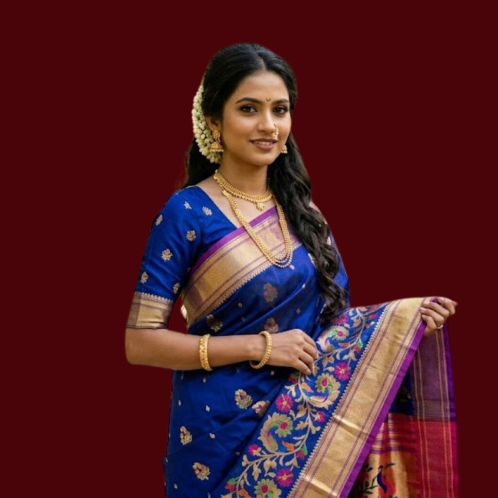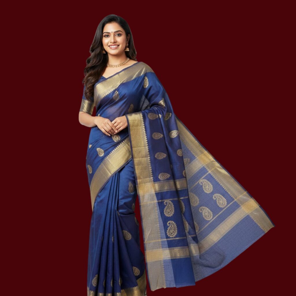 Parvanya Royal Cobalt Satin Saree with Filigree Embroidery Blouse