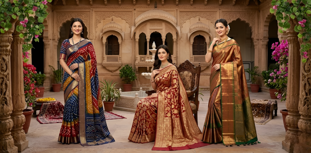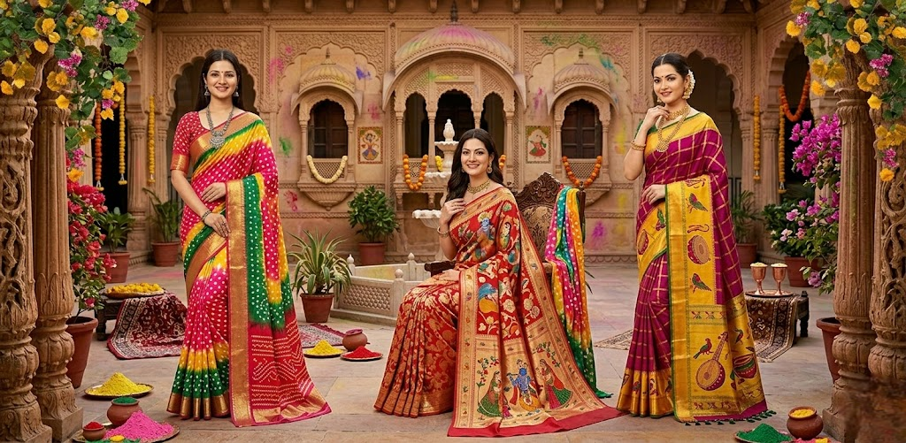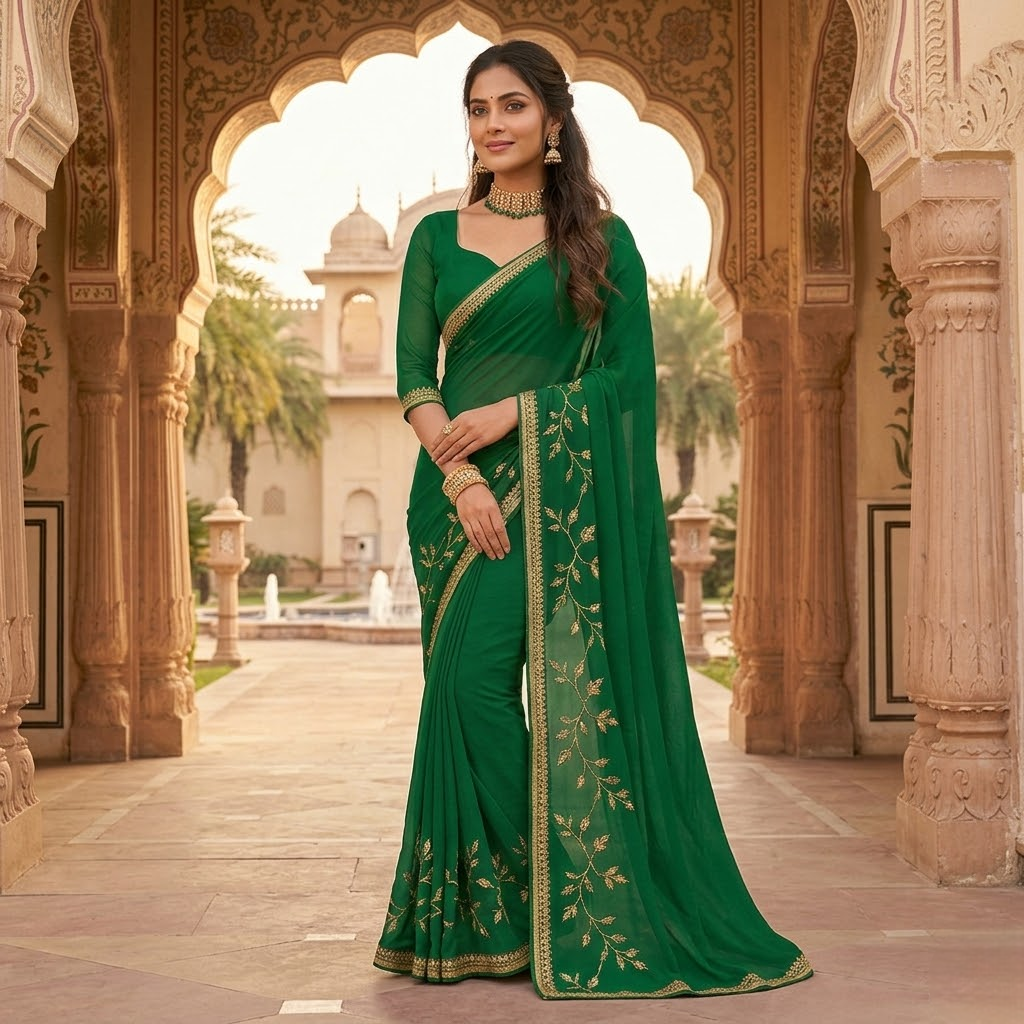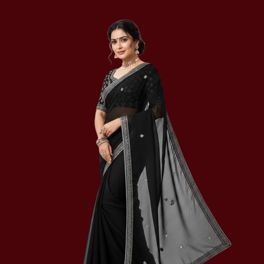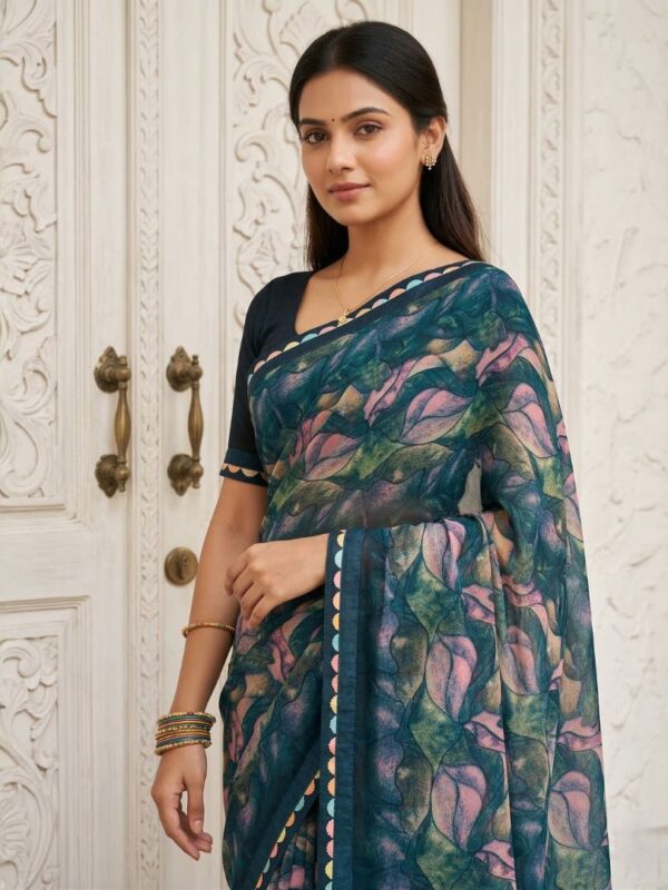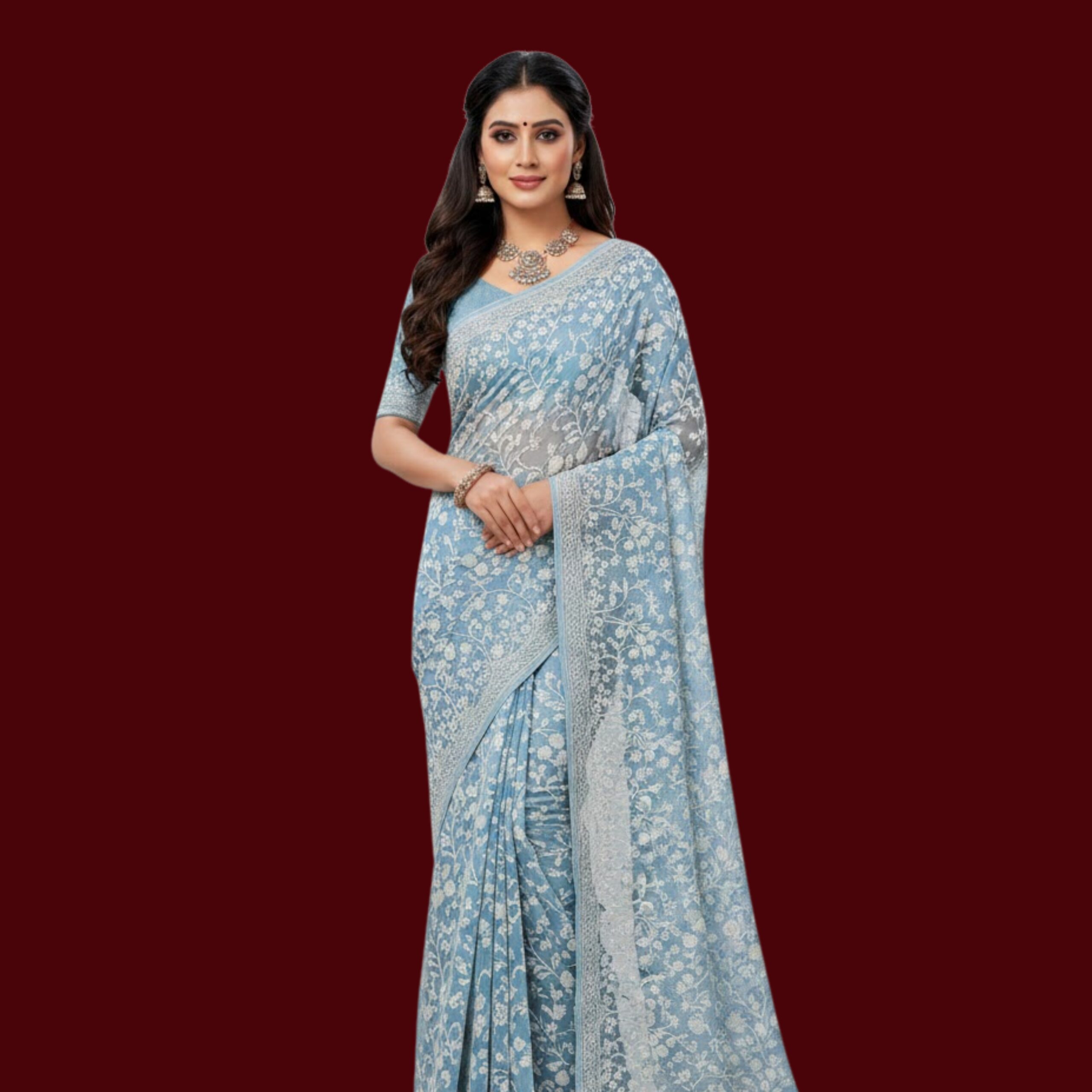 Parvanya Teal Blue Petal Bliss Georgette Saree
