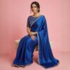 Parvanya Royal Cobalt Satin Saree with Filigree Embroidery Blouse